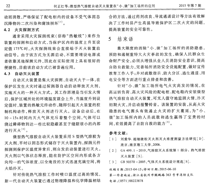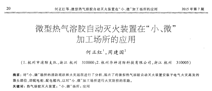 微型熱氣溶膠自動滅火裝置在“小、微”加工場所的應(yīng)用