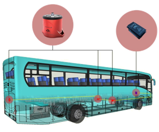 計(jì)案例:江西百路佳新能源6.5米長(zhǎng)客車,內(nèi)有電池艙5個(gè),故需設(shè)計(jì)的保護(hù)區(qū)為5個(gè)保護(hù)區(qū),每個(gè)保護(hù)區(qū)配置1臺(tái)自動(dòng)滅火裝置(型號(hào)QRR0.03GW/SHS-AR23ZF),5個(gè)保護(hù)區(qū)內(nèi)的5臺(tái)裝置通過(guò)總承線束和駕駛員操作盤(pán)上的模塊聯(lián)接。